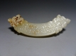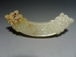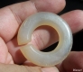 白玛瑙(冰种)勒子。两端对钻孔钻偏了,通过增加三只小孔补救贯通,其上精雕天鹅、白云、水草,历沧桑风化 ...