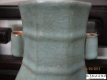 清嘉庆 官窑青花福寿纹如意耳扁瓶 款识:大清嘉庆年製 说明:抱月瓶亦称“宝月瓶”,小口、直颈,颈两侧饰 ...
