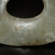 一个玉玦,玉质干净,沁色漂亮,侧光可见解玉砂痕,可见减缩台痕,珏口可见波浪形线切割痕,孔道符合楟钻打 ...