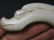 此器型猪龙实属罕见,可惜有残,钙化严重。用水煮过做了清洁后才发现还不如保留原样。龙身钙化斑呈现糯米一 ...