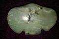 器形扁平,最宽度25CM,碧绿色玉质,器形完好.